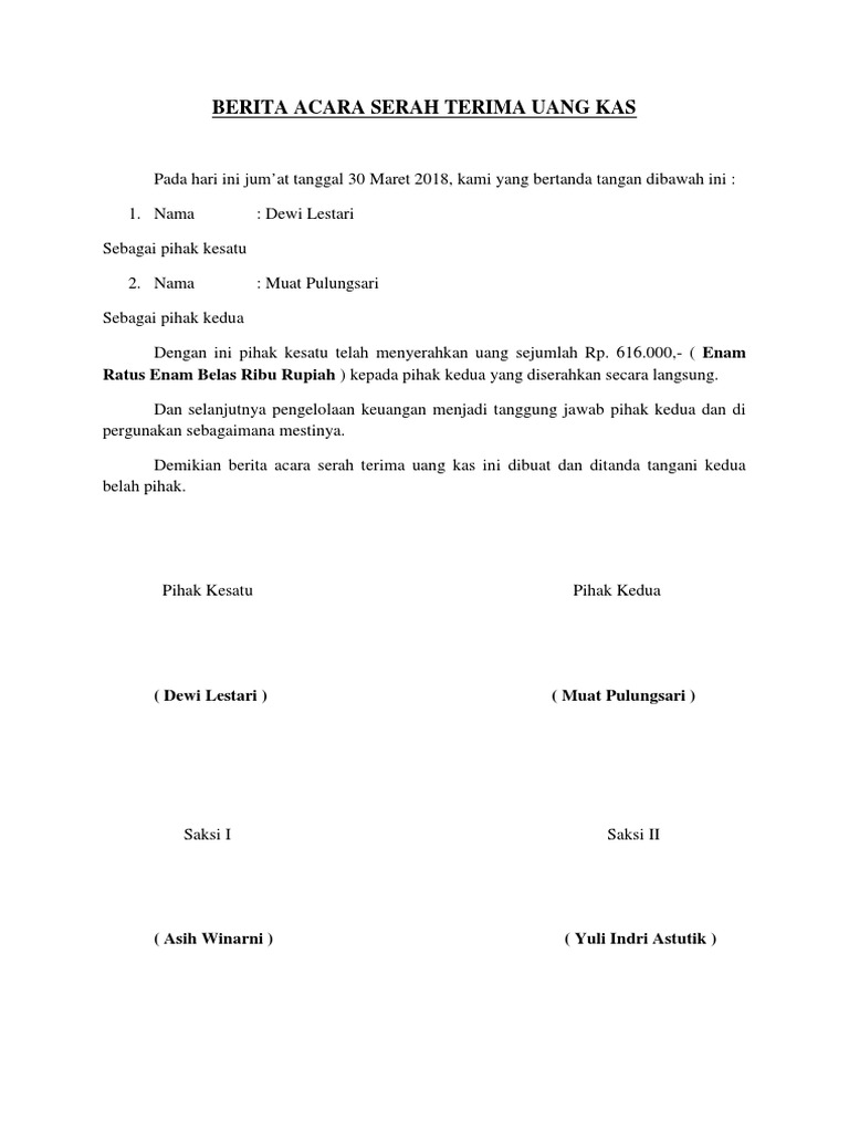 Berita Acara Serah Terima Uang Kas